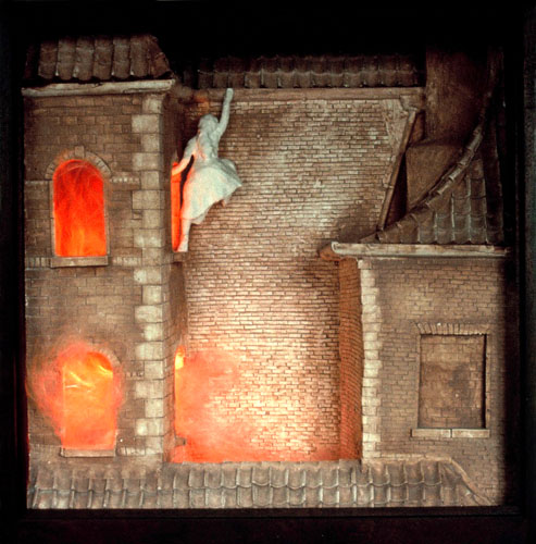 An Exciting Fire (Een Opwindende Brand) 1973, 77x67x32, plaster, angel hair, lighting