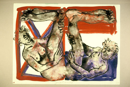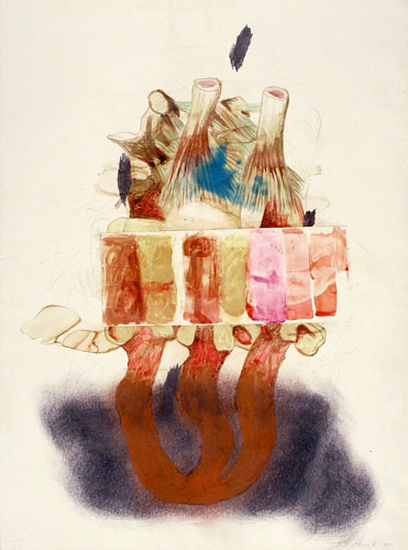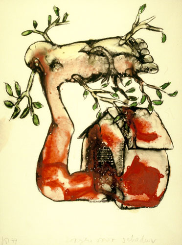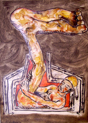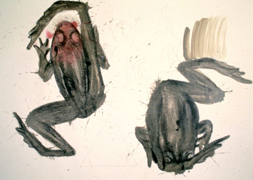 Toad with Humanoid, 1992, 145x110, graphite, clay water, acrylic
