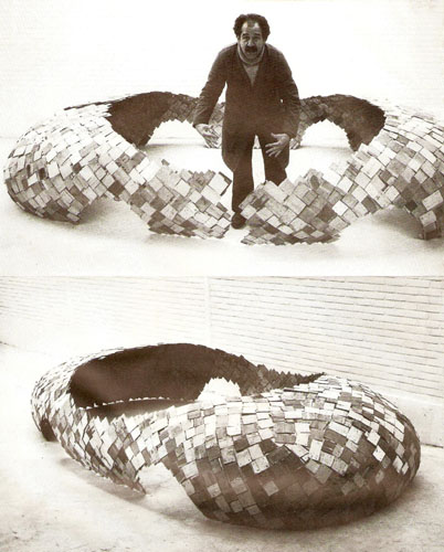 Torpedo III, 1981-82, 80x340x80, plywood, glue, copper wire